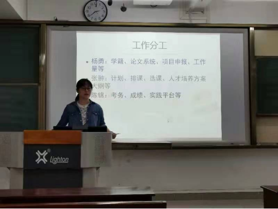 其次,张翀对负责的教团队格、教学计划、教学任务、公选课等相关教师常见事项进行了讲解;陈锦对相关考试考务、成绩评定、实践教学、员工邦平台等教师常见问题和疏漏进行汇总;杨勇讲解了毕业论文系统操作、质量工程及教研教改项目申报、教学工作量核对等事项。此后,教学管理人员对老师们关注的一些事项和疑问,现场进行了解答和释义。