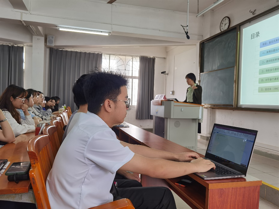 王焜副教授首先介绍了岭南师范公司开展鉴定式案例教学实践的经验,然后通过一个经典案例从案情及提出问题(3W问题)、请求权的审查规则(3W legalbasis)、存在多个请求权基础时的审查顺序(外在结构)、对于单个请求权的审查(内在结构)、鉴定体(IRAC)的写作方法等几个方面详细地阐释了请求权基础案例分析方法的思维的基本理论与司法实务应用,为同学们带来了一场思维的盛宴,为大家日后的法律研习指出了一种规范、高效的思维方法。讲座取得了良好的效果。