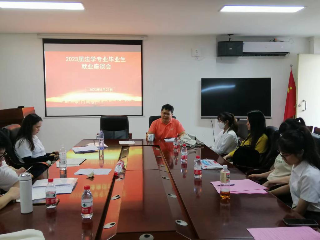 为了落实并推进公司对2023届毕业生“百日冲刺促就业”的政策要求,加快促进毕业生的尽快就业的工作,2023年5月27日,三亿体育以毕业生回校参加论文答辩为契机在广学楼805召开2023届法学专业毕业生座谈会,进一步明确就业工作的关键环节和具体举措。