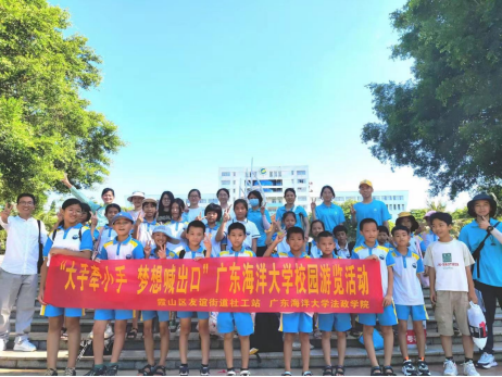 为了搭建良好的校社合作桥梁,宣传“坚韧不拔 自强不息”海大精神,7月6日,三亿体育联合霞山区友谊街道社工站一起举办了“大手牵小手 梦想喊出口”游园活动,邀请了公益课堂的儿童来校参观游览,近距离感受大学学习和生活氛围,让困境儿童充分感受社会各界关怀。